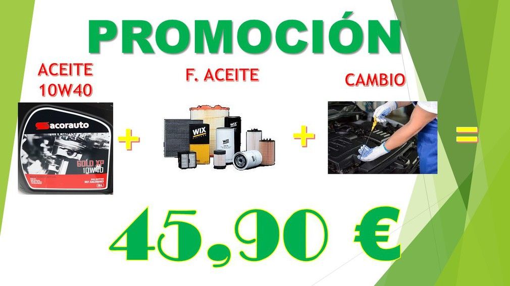Cambia el aceite de tu vehículo aceite sintetico 10w40 A3/B4 y filtro de aceite en la marca Wix por tan sólo 45,90 euros, mano de obra y tasa incluidas.